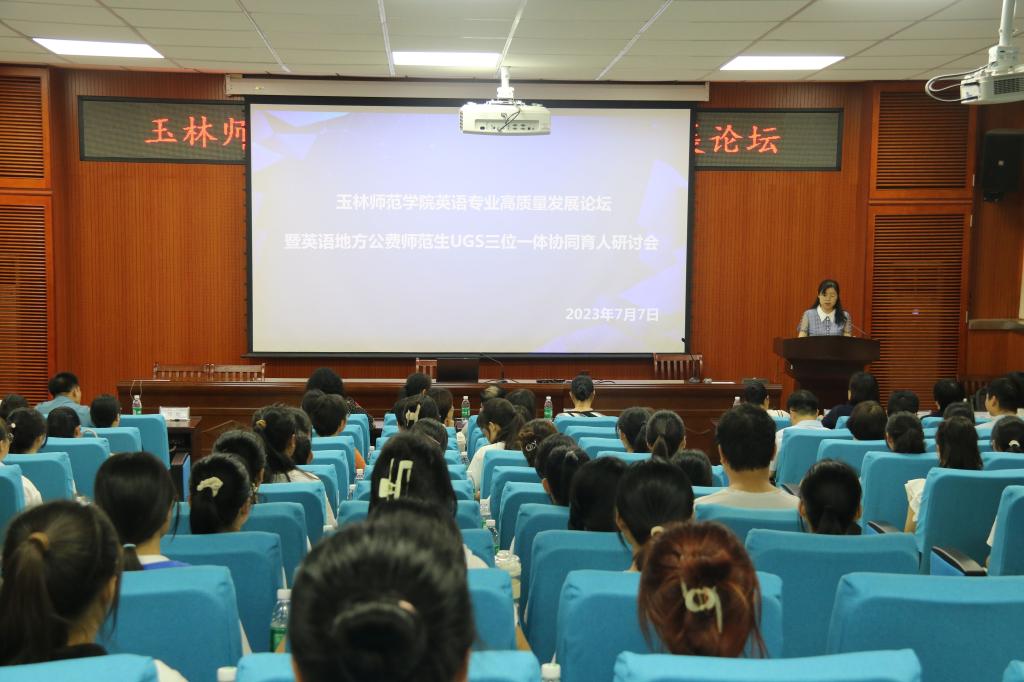 7月7日,太阳成tyc7111cc英语专业高质量发展论坛暨英语地方公费师范生UGS三位一体协同育人研讨会在公司东校区知行楼305举行,公司人才招聘处处长李家贵、教务处副处长邓旭出席论坛,公司领导、各县市区教育局领导、部分中学领导、英语专业全体教师、地方公费师范生共同参加会议,会议由公司副经理熊惠主持。