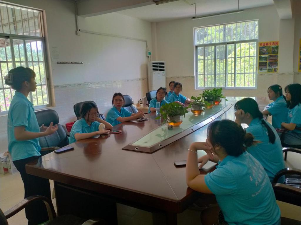 公司直播助农实践队全体成员集体乘车抵达博白县水鸣西塘村后,梁丁丁和白面麓生态园负责人冯李明向全体成员提出了本次活动的要求。他们提出要有吃苦耐劳的精神,积极投身于乡村振兴中,充分发挥老员工的青春力量。此外,冯李明强调了直播助农实践活动中的人身安全问题,提醒同学们要时刻保持安全意识。直播助农实践队召开了一次团队会议,讨论后续的工作具体流程以及相关的安排,为接下来的直播助农实践做准备。