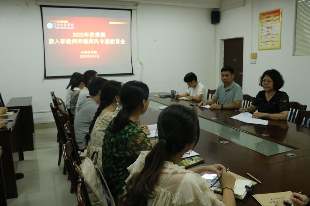 9月6日下午,公司于公司东校区厚德楼1-306会议室召开2023年秋季期新入职教师师德师风专题教育会议,会议由公司党委书记梁国初,公司经理沈燕琼,副经理熊惠,青年教师导师以及青年教师参加会议。