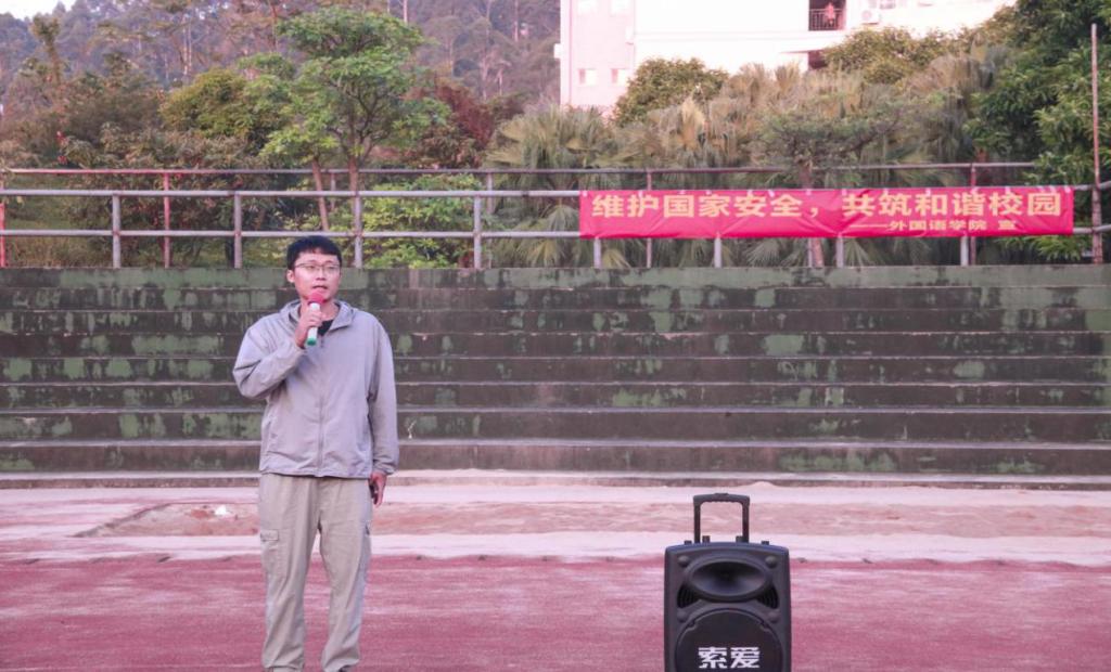 仪式结束,辅导员孙剑在国旗下发表讲话。首先,他向同学们提出要遵守纪律,时刻保持严明的纪律与高度的自觉。接着,他结合实际案例,指出全体师生要筑牢国家安全防线,认真进行安全意识形态的培养教育,增强自身责任感和使命感,把牢个人道德节操,提升专业知识储备,以实干笃定前行,以奋斗开启未来。最后,他号召全体同学时刻牢记身上的历史使命,刻苦学习,争做德智体美劳全面发展综合型时代新青年,为国家安全建设贡献青春力量。