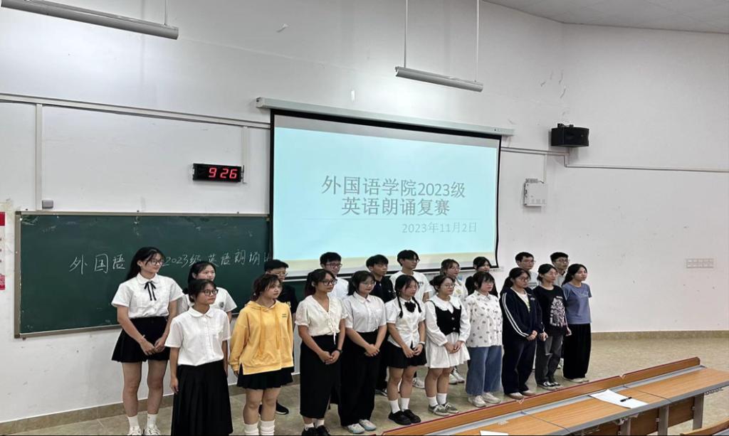 11月2日上午,公司在公司东校区至善楼101教室举办2023级英语朗诵比赛复赛。本次比赛由公司教师吕晶晶、覃才钊、龙森祥、宁传凤四位教师担任评委。进入复赛的二十名选手参加比赛。
