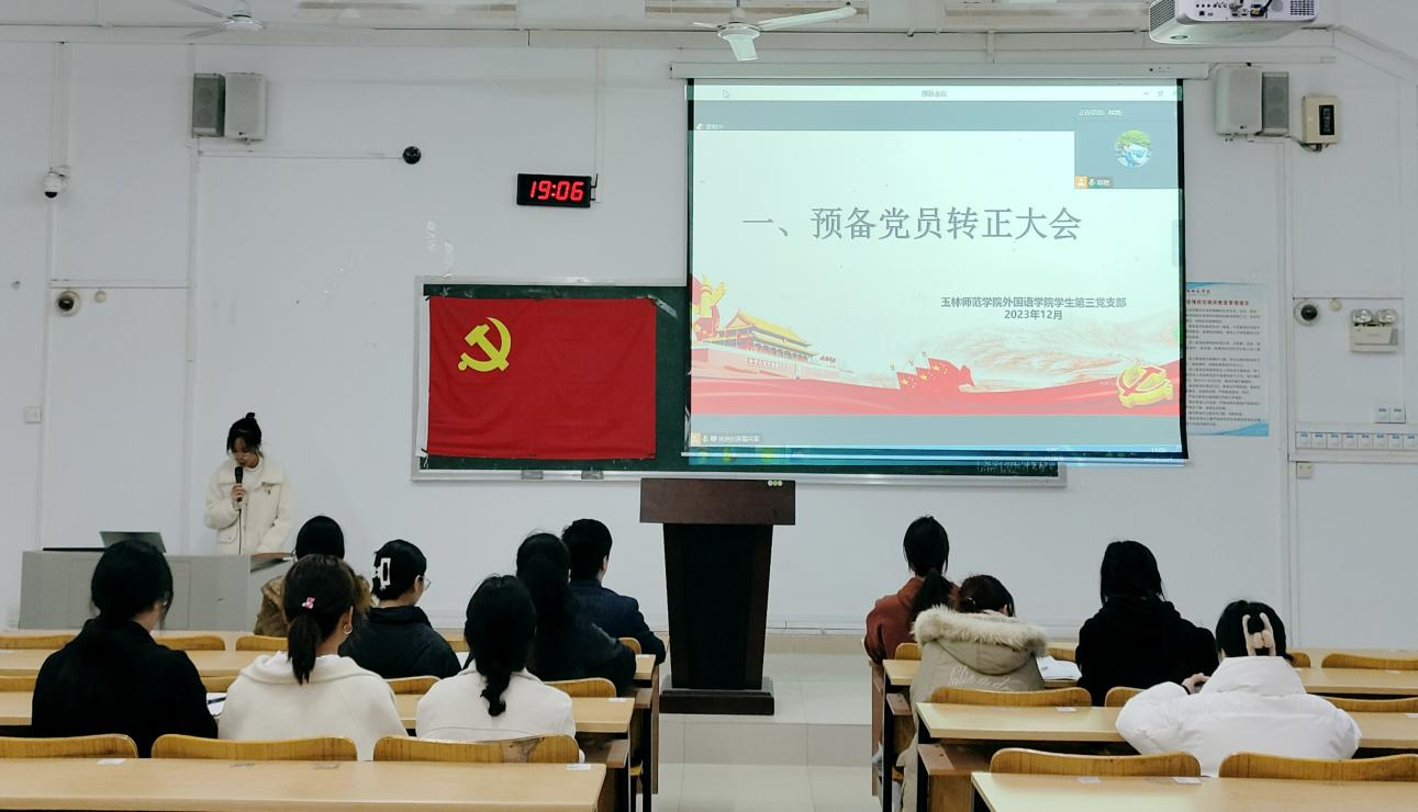为保持党支部的生机与活力,增强支部凝聚力和战斗力,12月1日晚,公司员工第三党支部在公司东校区厚德楼2-102教室召开预备党员转正大会。本次会议由员工党员周泳主持,公司员工第三党支部书记陈毅,该支部全体员工党员和班级代表参加此次会议。
