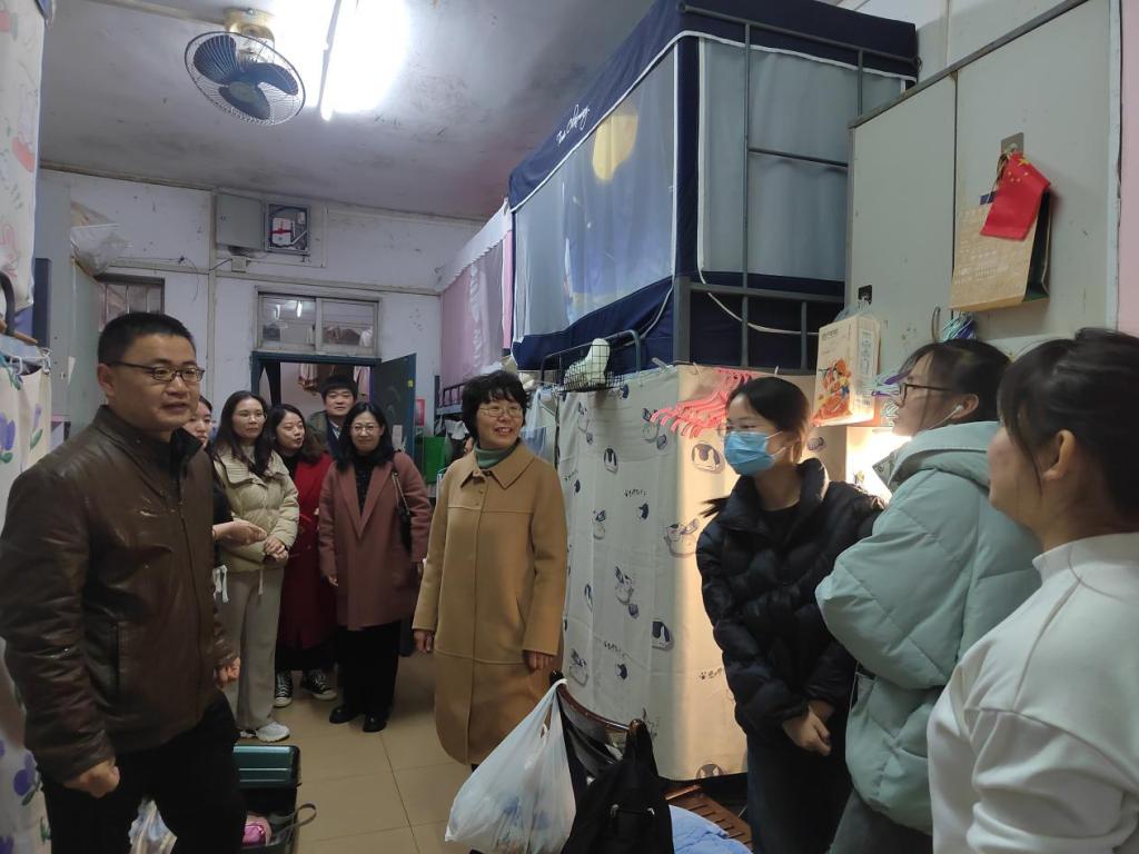靳闯一行走进员工宿舍,深入了解员工情况。靳闯悉心询问员工的返校情况、生活情况、入住寝室等方面的感受,细心询问员工目前遇到的问题和困难;同时,对宿舍内存在的安全隐患进行排查并解决相关的困难。经理郎晓娟关心员工的安全情况以及新学期的学习规划,激励员工在新学期保持积极向上的状态迎接新学期。各位领导也提醒员工提高安全意识,保持宿舍环境卫生,营造文明、安全、和谐的宿舍环境。全体辅导员、各班主任深入清点核对员工返校情况,对宿舍消防安全、防电信诈骗、用电安全、卫生清洁等方面进行了提醒帮助员工更快适应新学期的学习与生活。