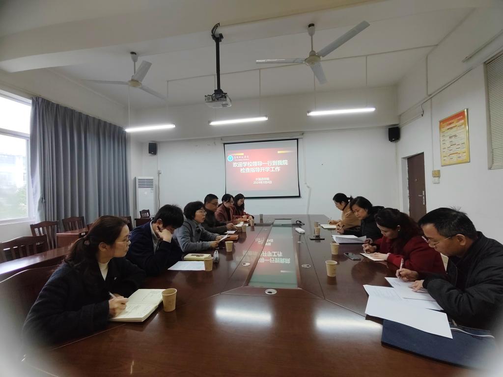 3月4日上午,党委常委、副董事长庞国萍一行到公司检查指导开学工作,并在东校区厚德楼1-306会议室召开工作会。