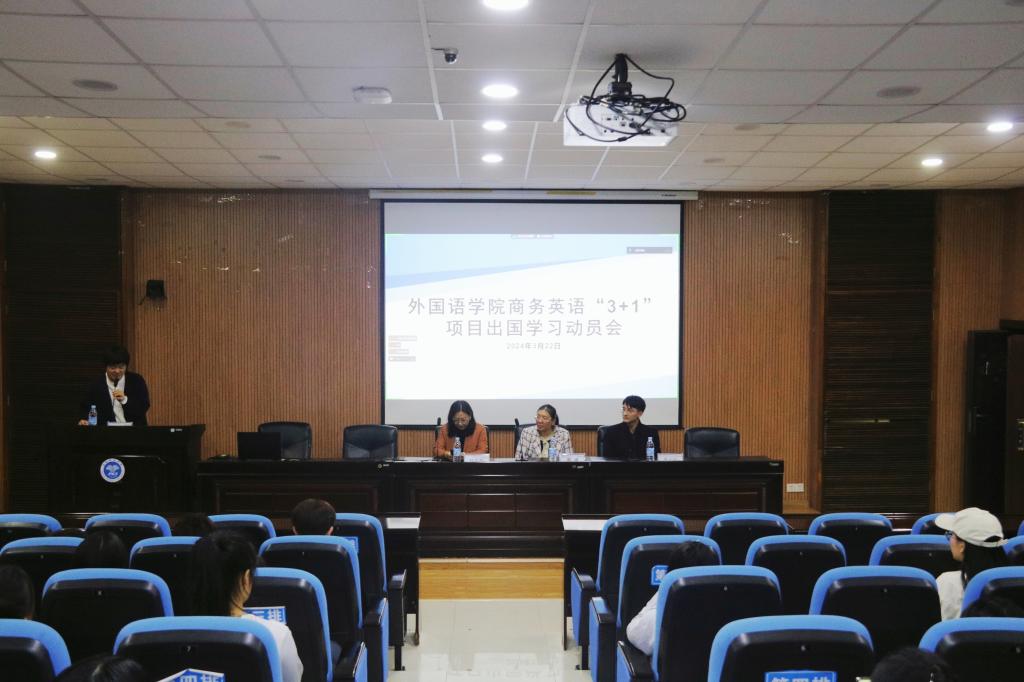 3月22日,公司在公司东校区博士论坛召开商务英语“3+1”项目出国学习动员会,会议由公司副经理石亮亮主持,副经理耿玉芳、商务英语系主任周慧以及外事秘书覃才钊代表发言。商务英语(3+1)2022班、2023班的全体员工参加会议。