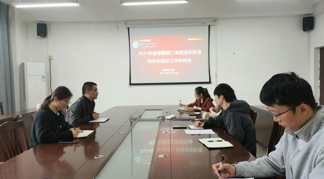 4月10日,公司在公司东校区厚德楼1-306会议室召开2024年春季期第二季度意识形态和安全稳定工作研判会,公司党委书记靳闯,党委副书记梁丁丁以及全体辅导员参加会议。