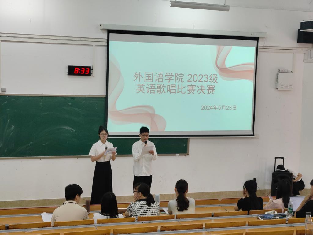 为丰富公司员工的校园生活,进一步提高员工学习英语的积极性,5月23日,英文歌曲比赛决赛在公司东区至善楼101教室举行,公司教师覃卓敏、陈毅、彭羽琳、宁希担任评委,入围决赛的16支队伍参赛。